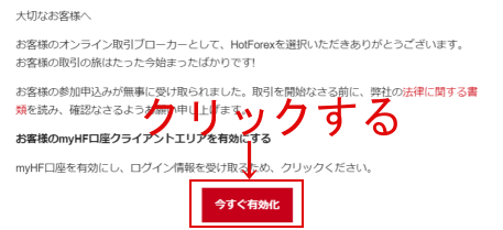 メールの本文中に「今すぐ有効化」というボタンがありますのでクリックします。