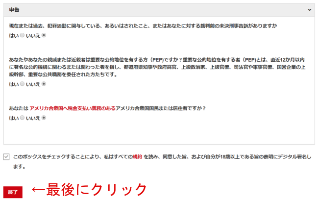 入力を全て終えて「口座を開設する」を押すと口座が開設されます。