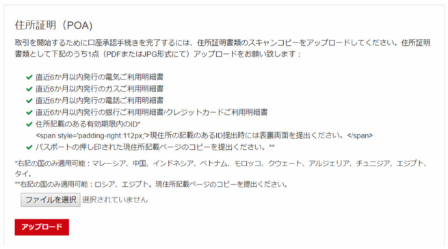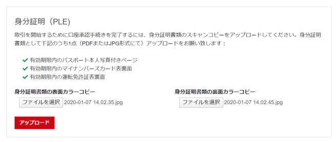 「終了」を押した次は身分証明書のアップロード画面が表示されます。