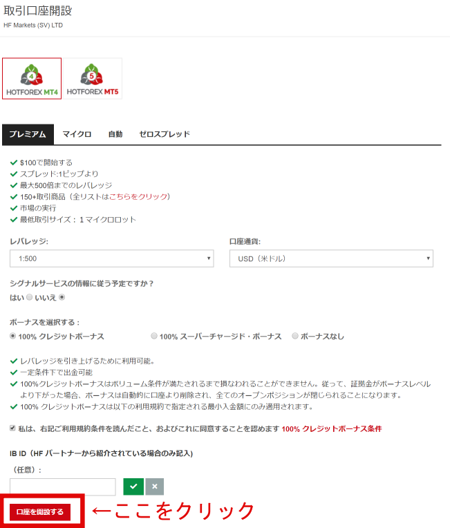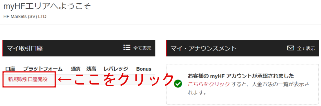 HotForexのマイページに「新規取引口座開設」が押せるようになっているので押してください。