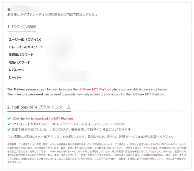 ここのログイン情報はFXの取引を行うソフトのMT4で使用します。