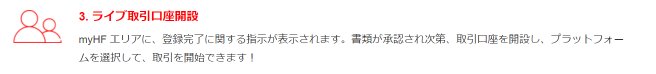 身分証の確認で問題がなければマイページから口座開設が可能となります。